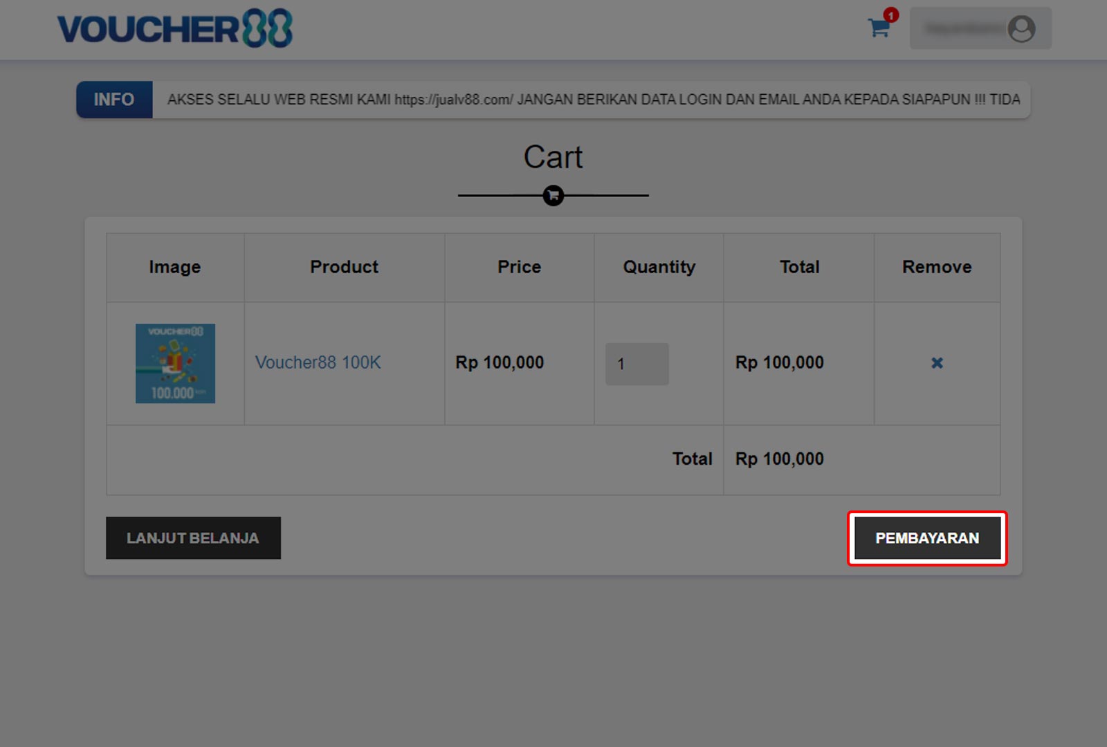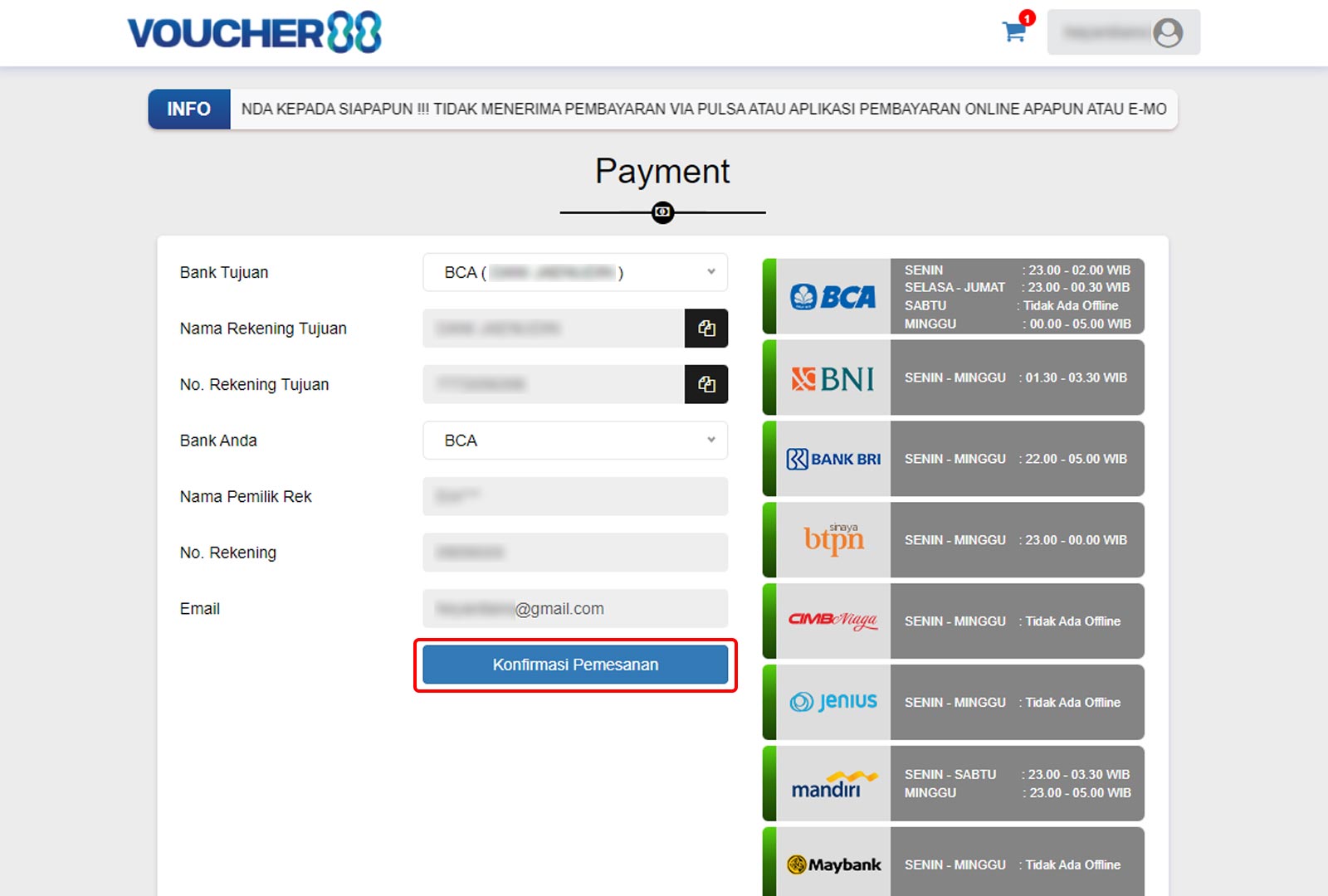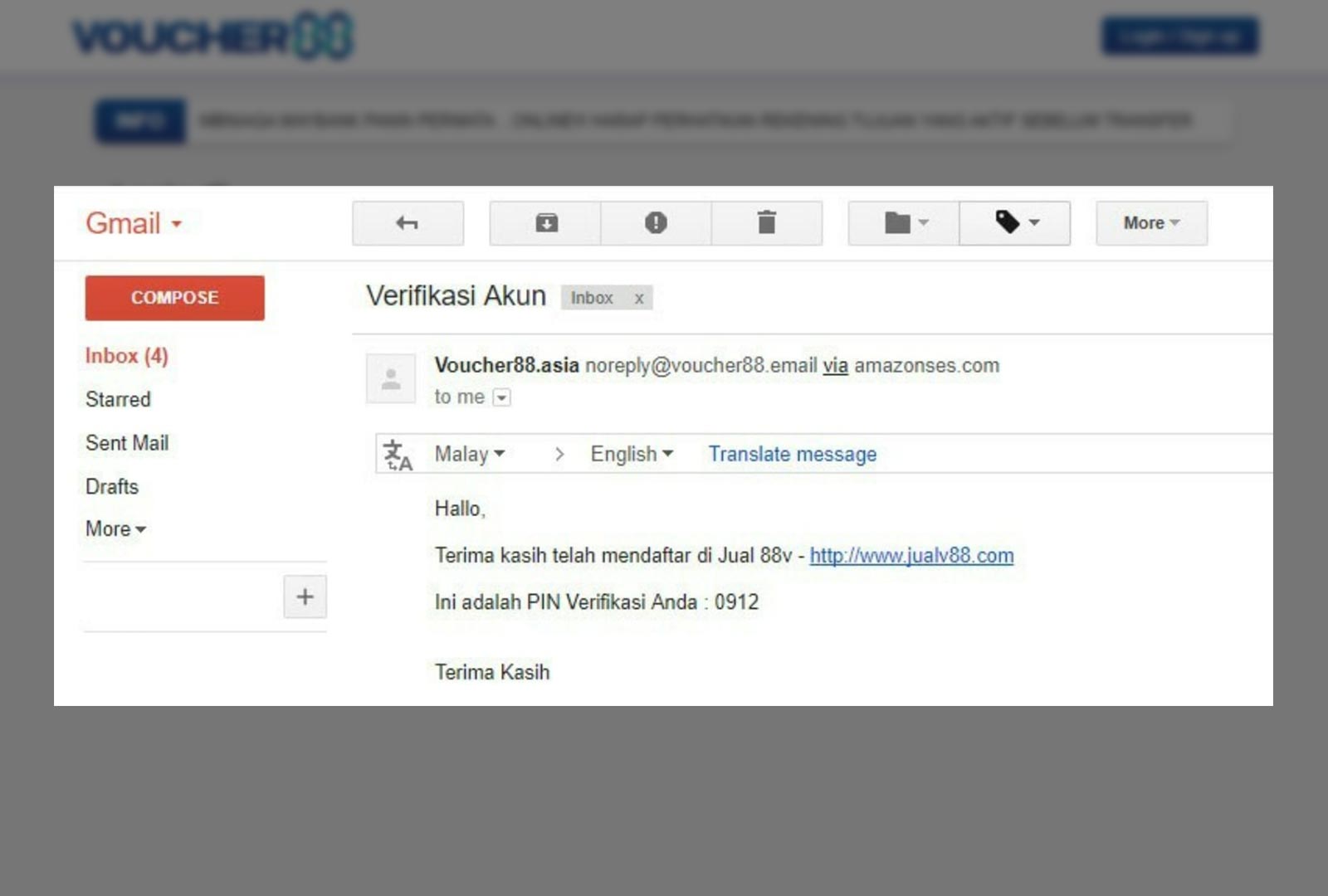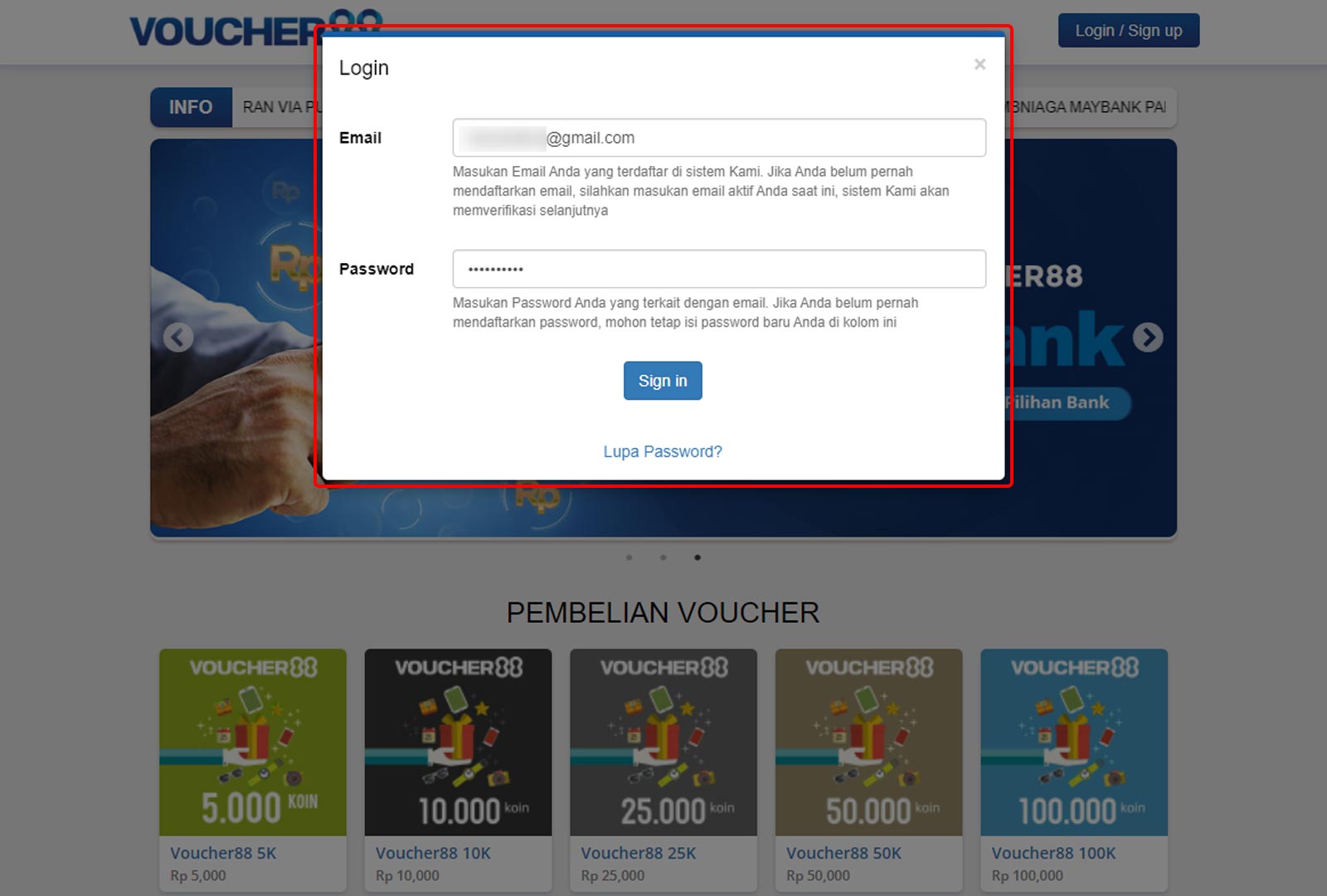 Penting: Pastikan Email Anda Aktif, Semua Transaksi di Voucher88 menggunakan Email.