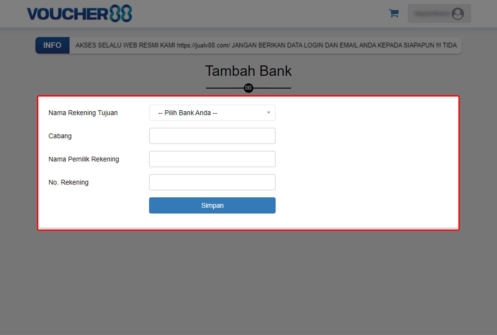 Setelah Anda mengisi Data Akun Bank Anda, Klik "SIMPAN"
